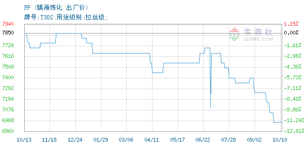 05月18日中国石油化工股份有限公司镇海炼化分公司关于PP的报价为7250元/吨。PP的规格:牌号:T30S;用途级别:拉丝级;。该报价有效期为3天。报价提供方:中国石油化工股份有限公司。