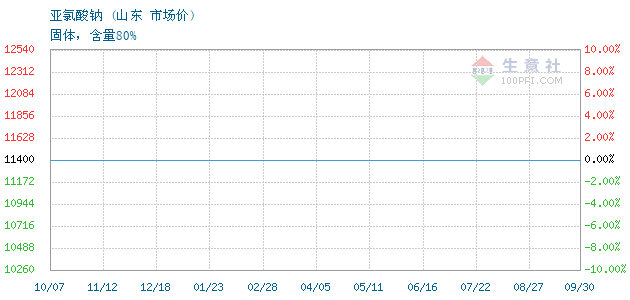 核心提示:05月20日山东关于亚氯酸钠的报价为11500元/吨。亚氯酸钠的规格:固体,含量......
