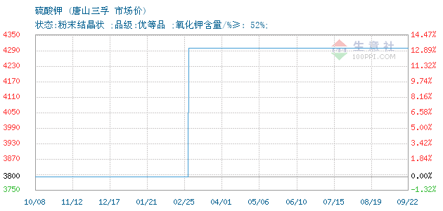 核心提示:06月29日唐山三孚关于硫酸钾的报价为3900元/吨。硫酸钾的规格:状态:粉末结......