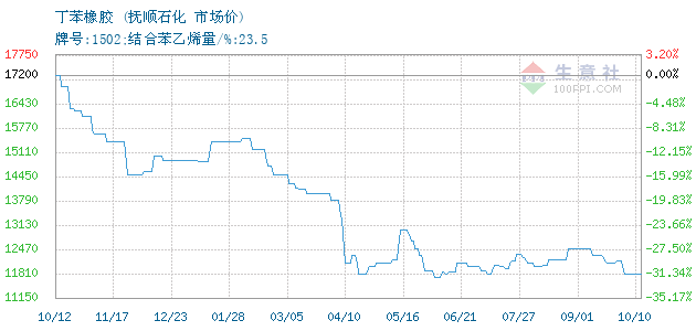 • 2023年7月21日抚顺石化丁苯橡胶为11800元