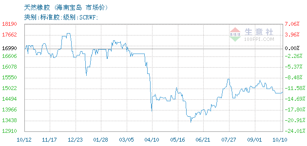 2023年8月12日海南宝岛天然橡胶(SCRWF)为11350元