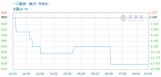 • 2023年8月15日斯尔邦一乙醇胺为9000元