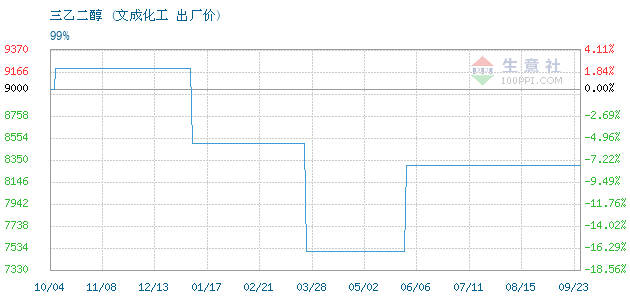 核心提示:08月22日文成化工关于三乙二醇的报价为8000元/吨。三乙二醇的规格:99%。......