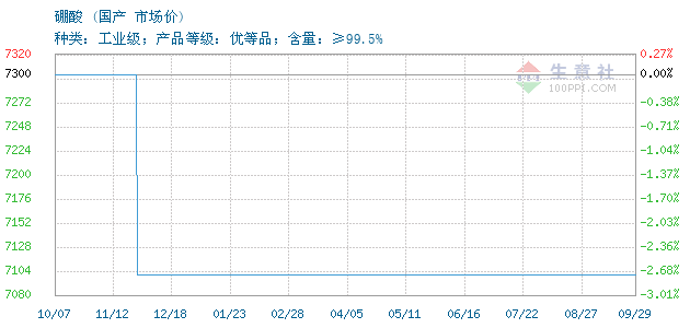 核心提示:08月26日国产关于硼酸的报价为7300元/吨。硼酸的规格:种类:工业级;产品等......