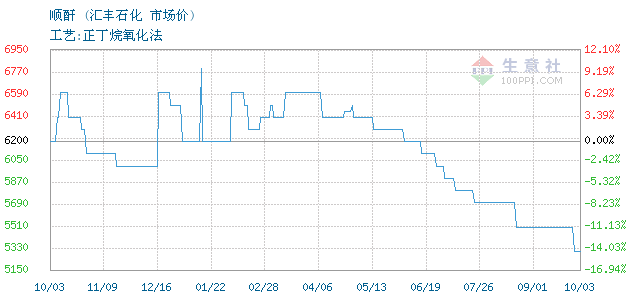 核心提示:08月30日山东汇丰石化有限公司关于顺酐的报价为7100元/吨。顺酐的规格:工艺......