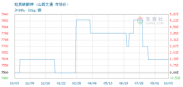 2023年9月8日山西文通轻质碳酸钾为8200元