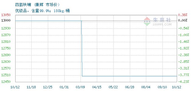 09月08日康辉关于四氢呋喃的报价为13500元/吨。四氢呋喃的规格:优级品,含量99.9%;180kg/桶。该报价有效期为3天。报价提供方:山东金生润化工有限公司。
