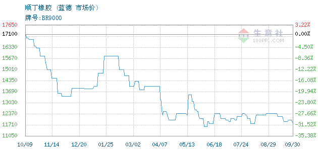 • 2023年9月12日抚顺石化丁苯橡胶为13400元
