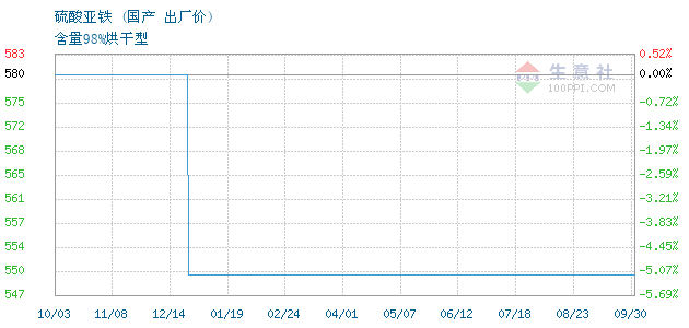 2023年9月14日国产硫酸亚铁为630元
