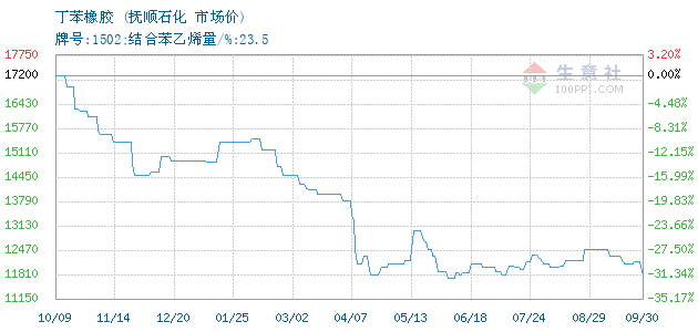 • 2023年10月13日抚顺石化丁苯橡胶为12700元