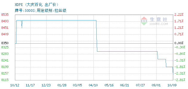11月03日中石油大庆石化公司关于HDPE的报价为8650元/吨。HDPE的规格:牌号:5000S;用途级别:拉丝级。该报价有效期为3天。报价提供方:中石油大庆石化公司。