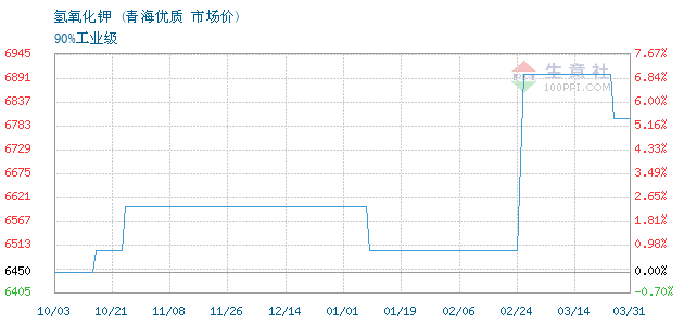 • 2023年11月10日青海盐湖氢氧化钾为6800元