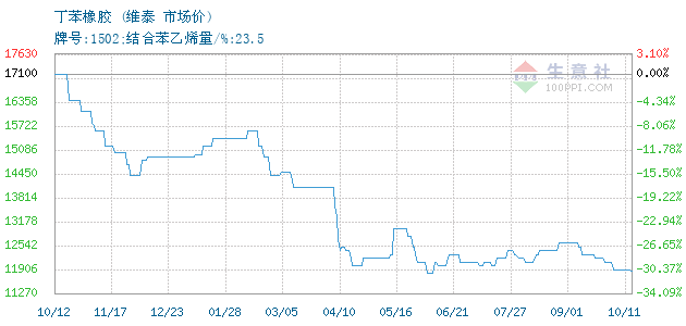 • 2023年11月17日维泰丁苯橡胶为11700元