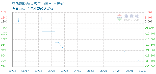 • 2023年10月27日国产硫代硫酸钠(大苏打)为1500元