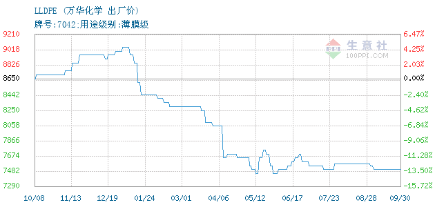 12月14日万华化学关于LLDPE的报价为8300元/吨。LLDPE的规格:牌号:7042;用途级别:薄膜级。该报价有效期为3天。报价提供方:山东烟台万华化学集团股份有限公司。