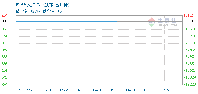 • 2023年9月13日国产聚合氯化铝铁为1050元