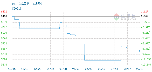 12月28日三房巷关于PET的报价为6950元/吨。PET的规格:CZ-318。该报价有效期为1天。报价提供方:嘉善塑来贸易有限公司。