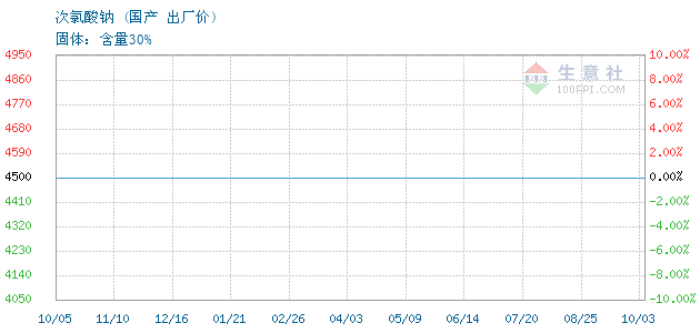 核心提示:01月07日国产关于次氯酸钠的报价为4500元/吨。次氯酸钠的规格:固体:含量3......