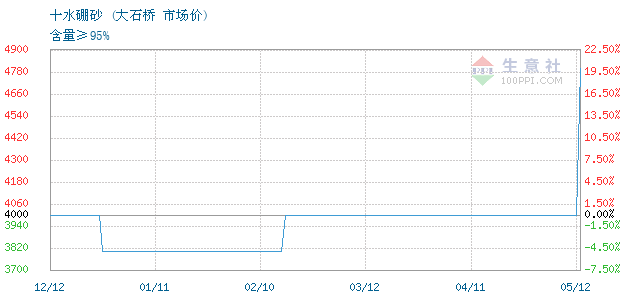 核心提示:01月07日大石桥关于十水硼砂的报价为4300元/吨。十水硼砂的规格:含量≥95......