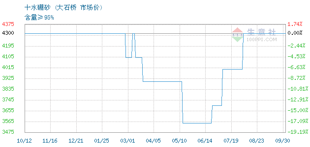 核心提示:01月12日大石桥关于十水硼砂的报价为4500元/吨。十水硼砂的规格:含量≥95......