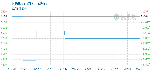 核心提示:01月25日河南关于过碳酸钠的报价为5700元/吨。过碳酸钠的规格:活氧性13%......
