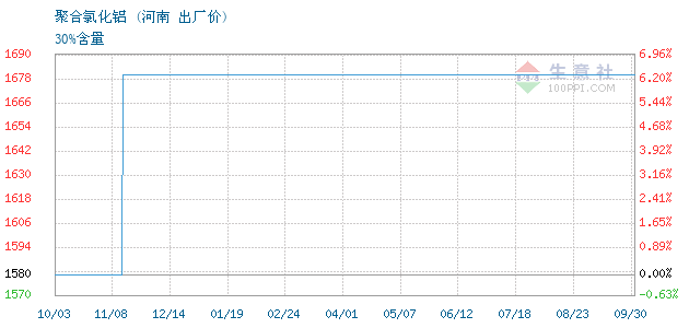 01月27日河南关于聚合氯化铝的报价为1600元/吨。聚合氯化铝的规格:30%含量。该报价有效期为3天。报价提供方:河南蓝恩化工有限公司。