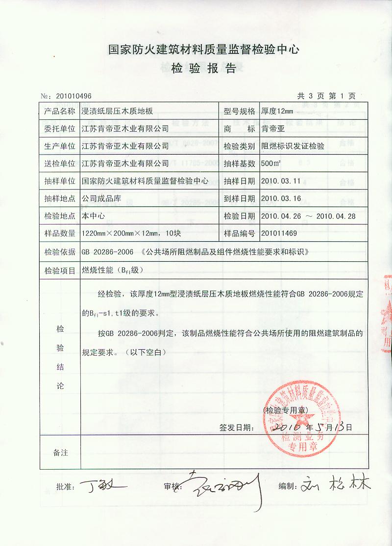 经检验,该制品燃烧性能符合B级的规定要求,附加分级符合s1,d0,t1级的规定要求。按GB 8624-2006判定,该制