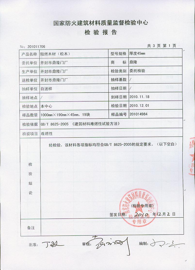 经检验,该材料各项指标均符合GB/T 8625-2005的规定要求。(以下空白)