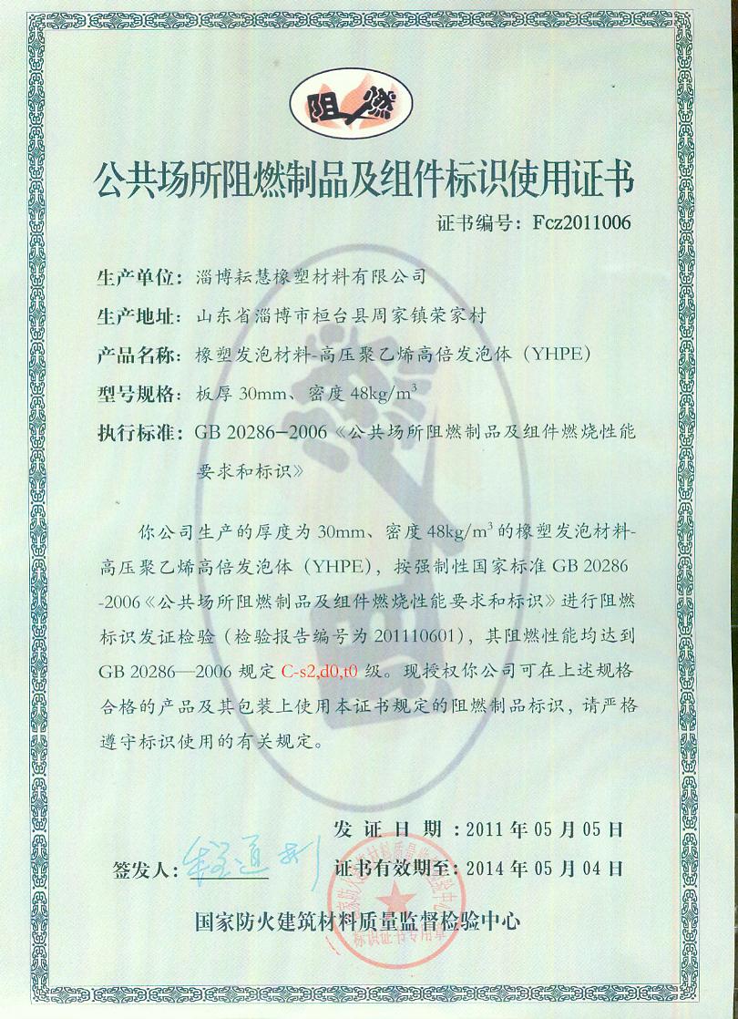GB 20286-2006 《公共场所阻燃制品及组件燃烧性能要求和标识》