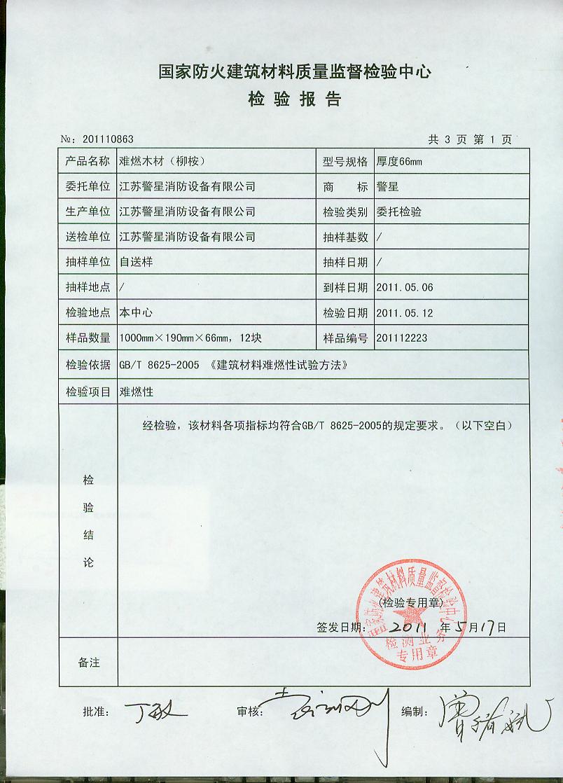 经检验,该材料各项指标均符合GB/T 8625-2005的规定要求。(以下空白)