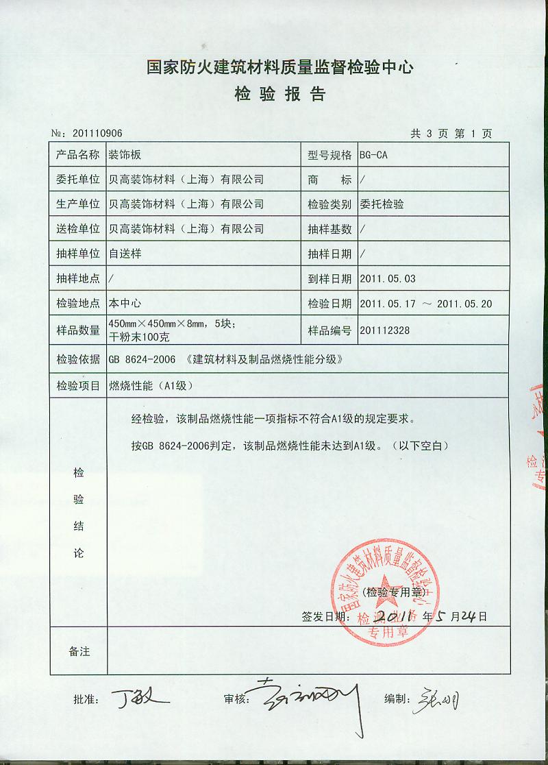 经检验,该制品燃烧性能 项技术指标不符合A1级的规定要求。按GB 8624-2006判定,该制品燃烧性能未达到A1级