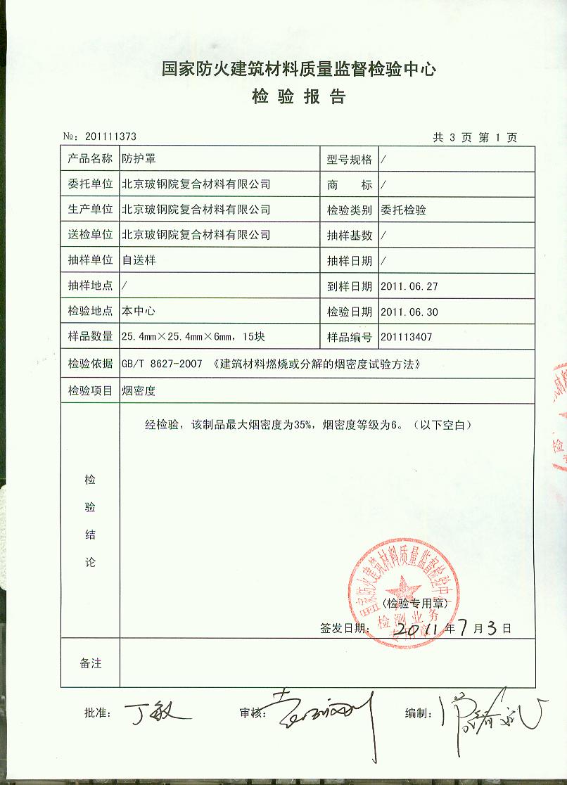 经检验,该制品最大烟密度为35%,烟密度等级为6。(以下空白)