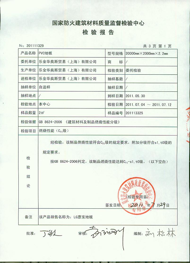 经检验,该材料燃烧性能符合C级的规定要求,按GB 8624-2006判定,该材燃烧性能达到C-s,d,t级。