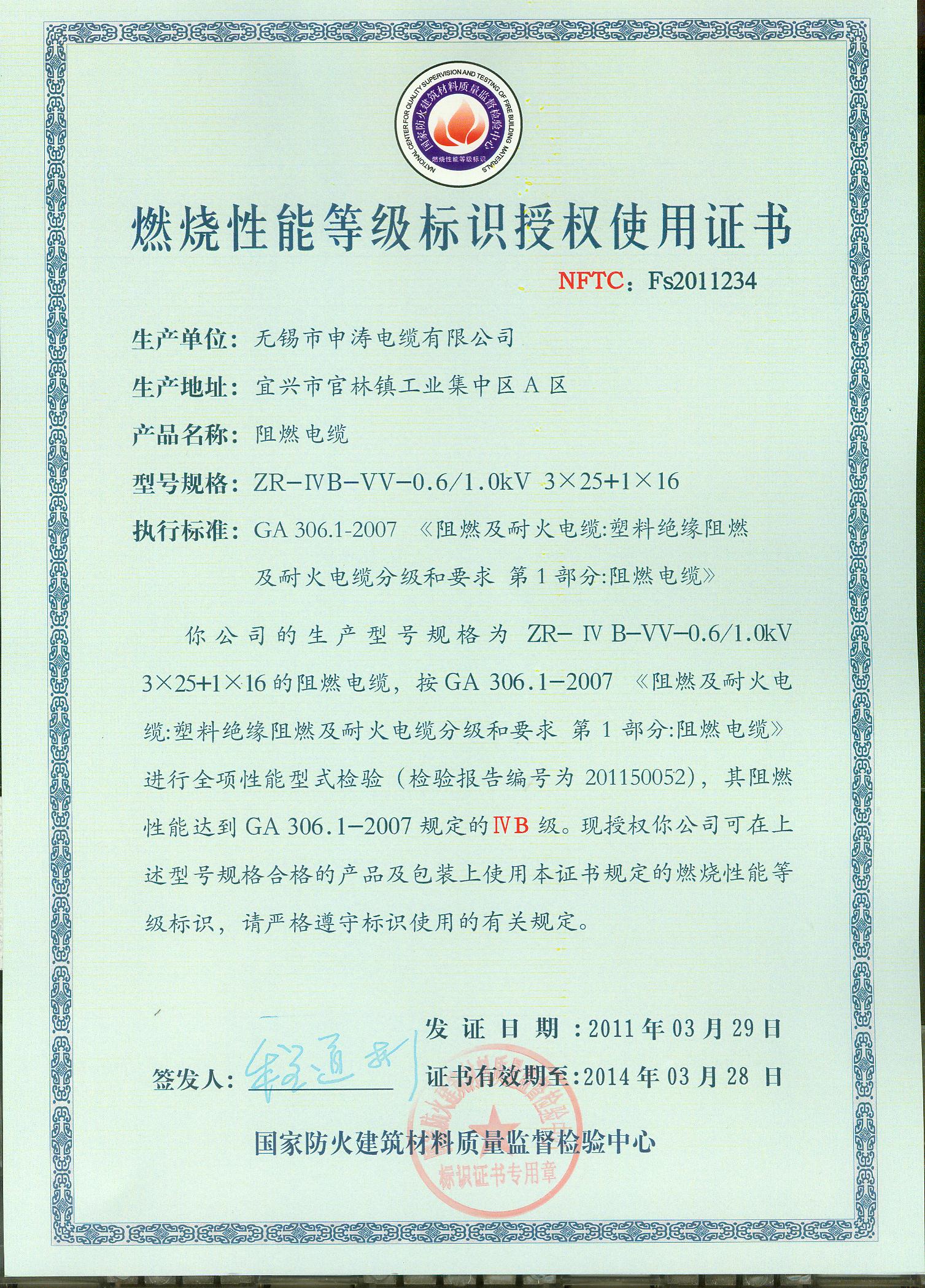 经检验,该ZR-ⅣB-VV-0.6/1.0kV 3×25+1×16阻燃电缆阻燃性能符合ⅣB级规定要求,其它各项技术指标均合格。按GA 306.1-2007综合判定,该产品质量合格。(以下空白)