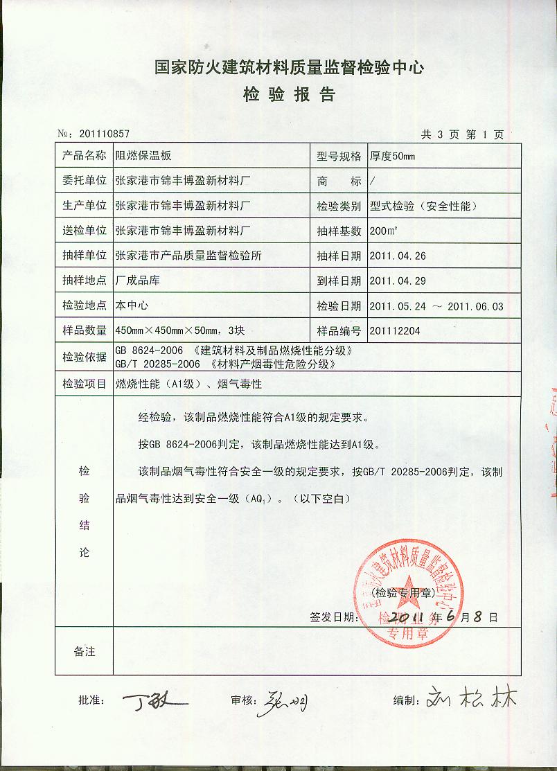 燃烧性能(A1级)、烟气毒性
