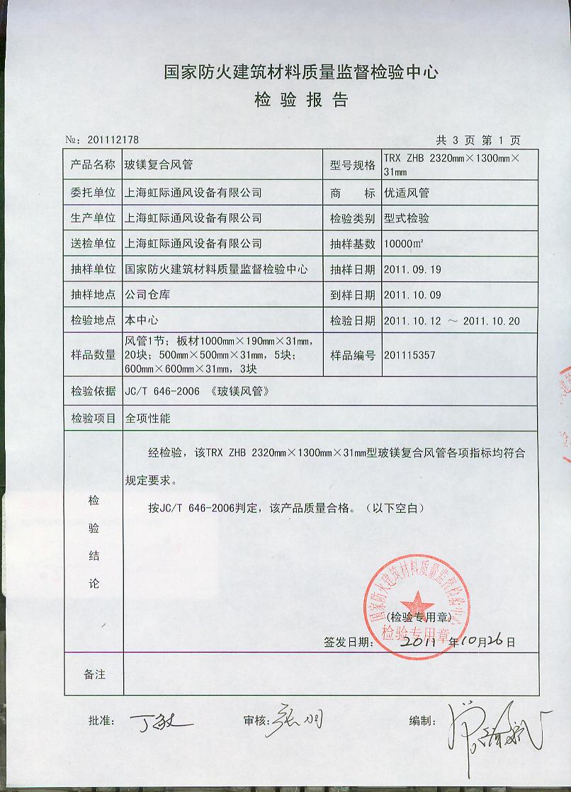 经检验,该 型各项指标均符合规定要求。按JC/T 646-2006判定,该产品质量合格。(以下空白)