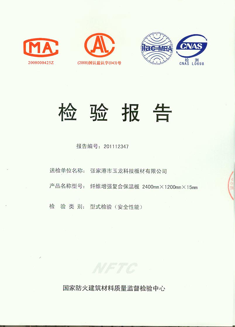 经检验,该制品燃烧性能符合A1级的规定要求。 按GB 8624-2006判定,该制品燃烧性能达到A1级。 该制品烟气毒性符合安全一级的规定要求,按GB/T 20285-2006判定,该制品烟气毒性达到安全一级(AQ1)。(以下空白)