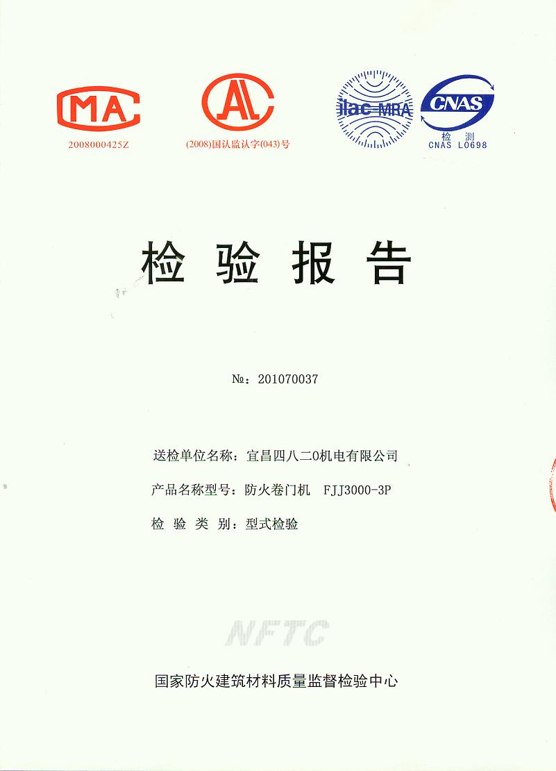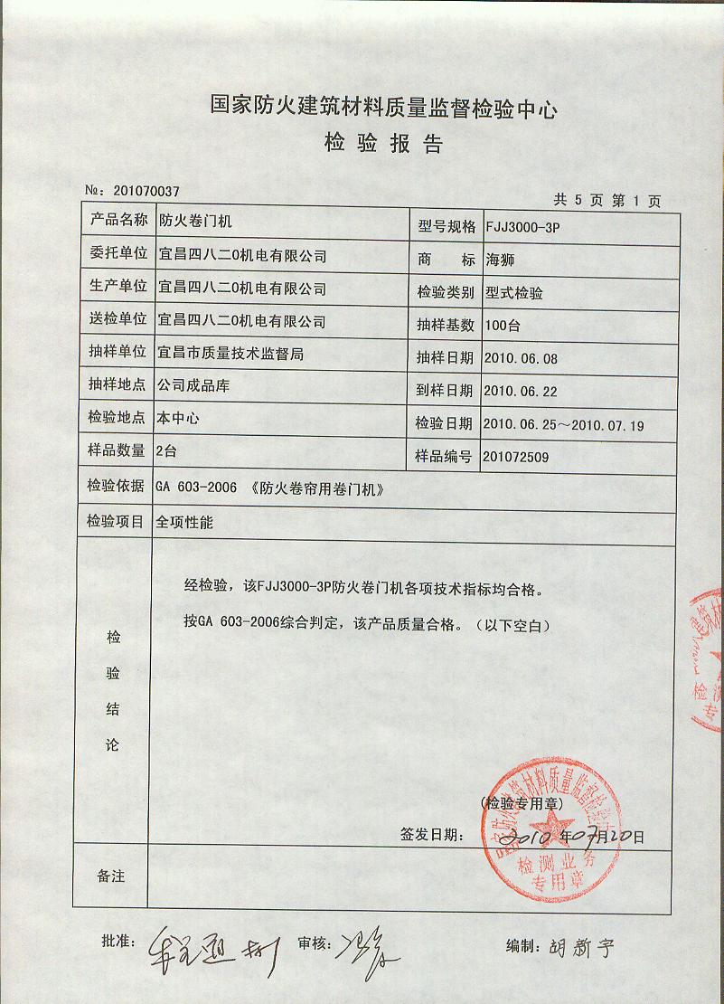 经检验,该FJJ3000-3P防火卷门机各项技术指标均合格。按GA 603-2006综合判定,该产品质量合格。(以下空白)