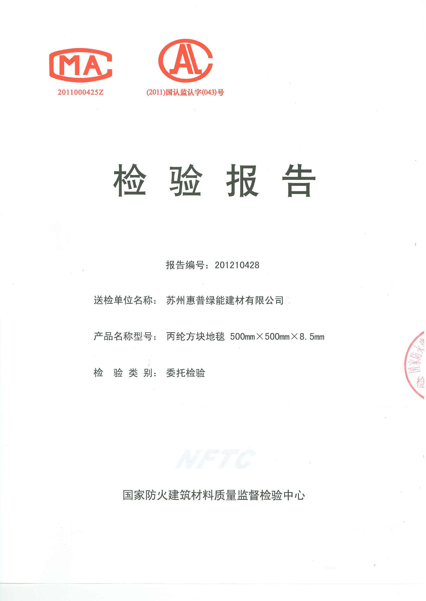 经检验,该制品燃烧性能符合D_(fl)级的规定要求,附加分级符合s1级的规定 要求。 按GB 8624-2006判定,该制品燃烧性能达到D_(fl)-s1级。(以下空白)