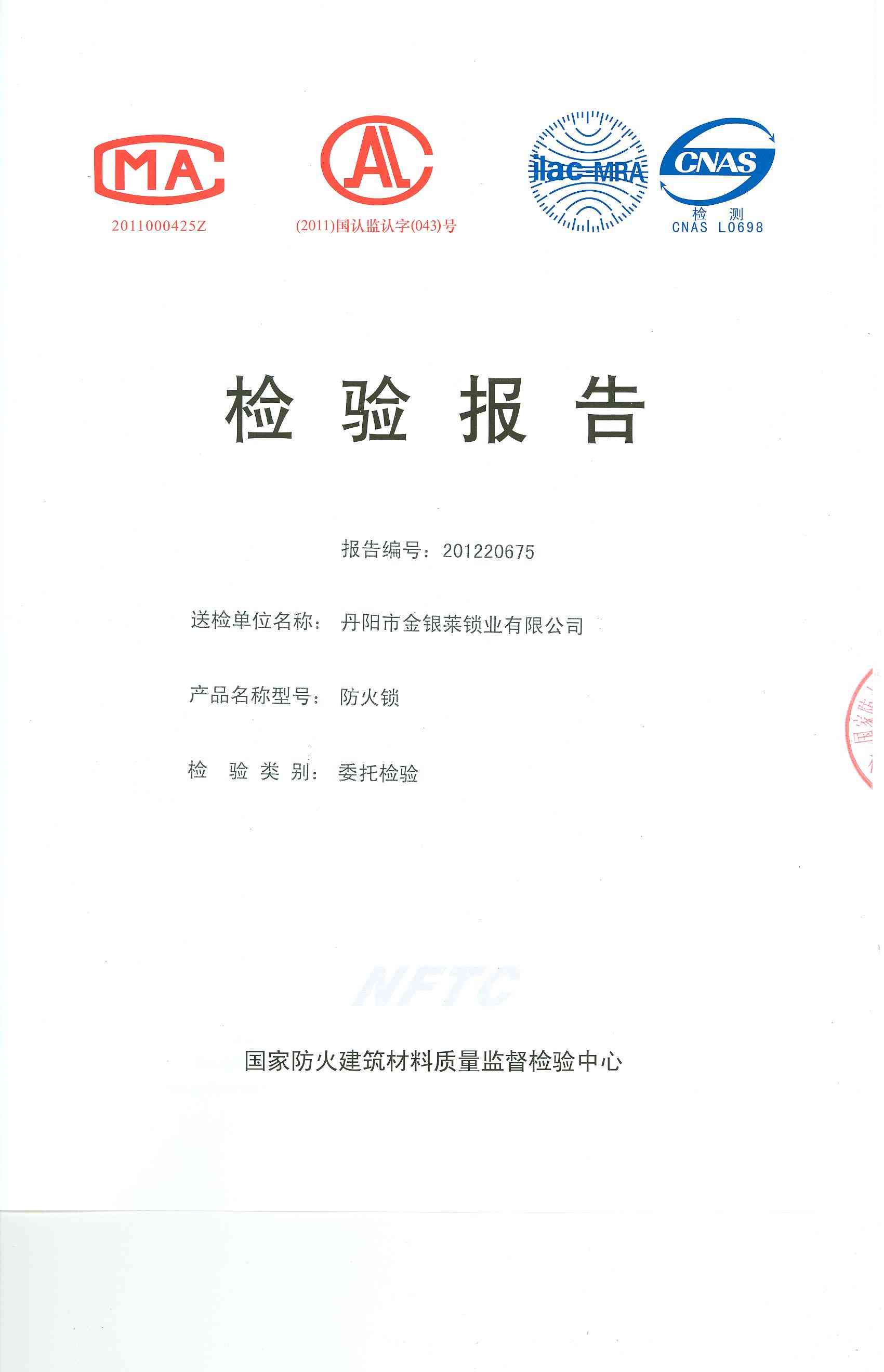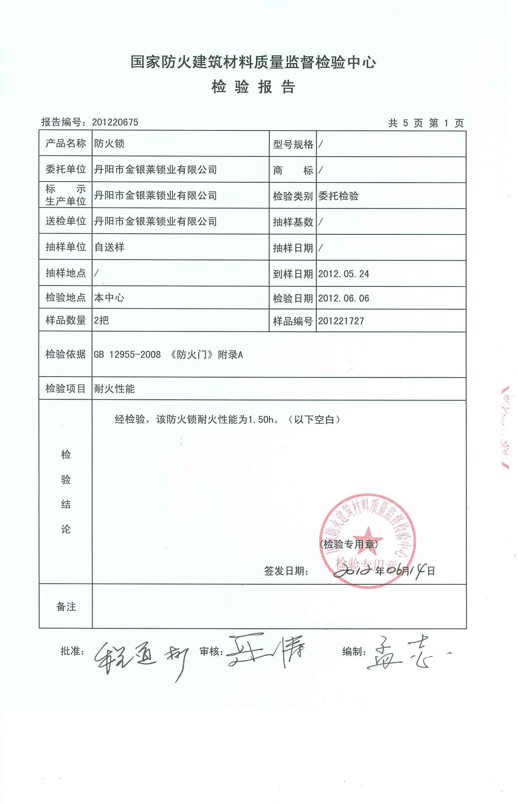 经检验,该防火锁耐火性能为1.50h。(以下空白)