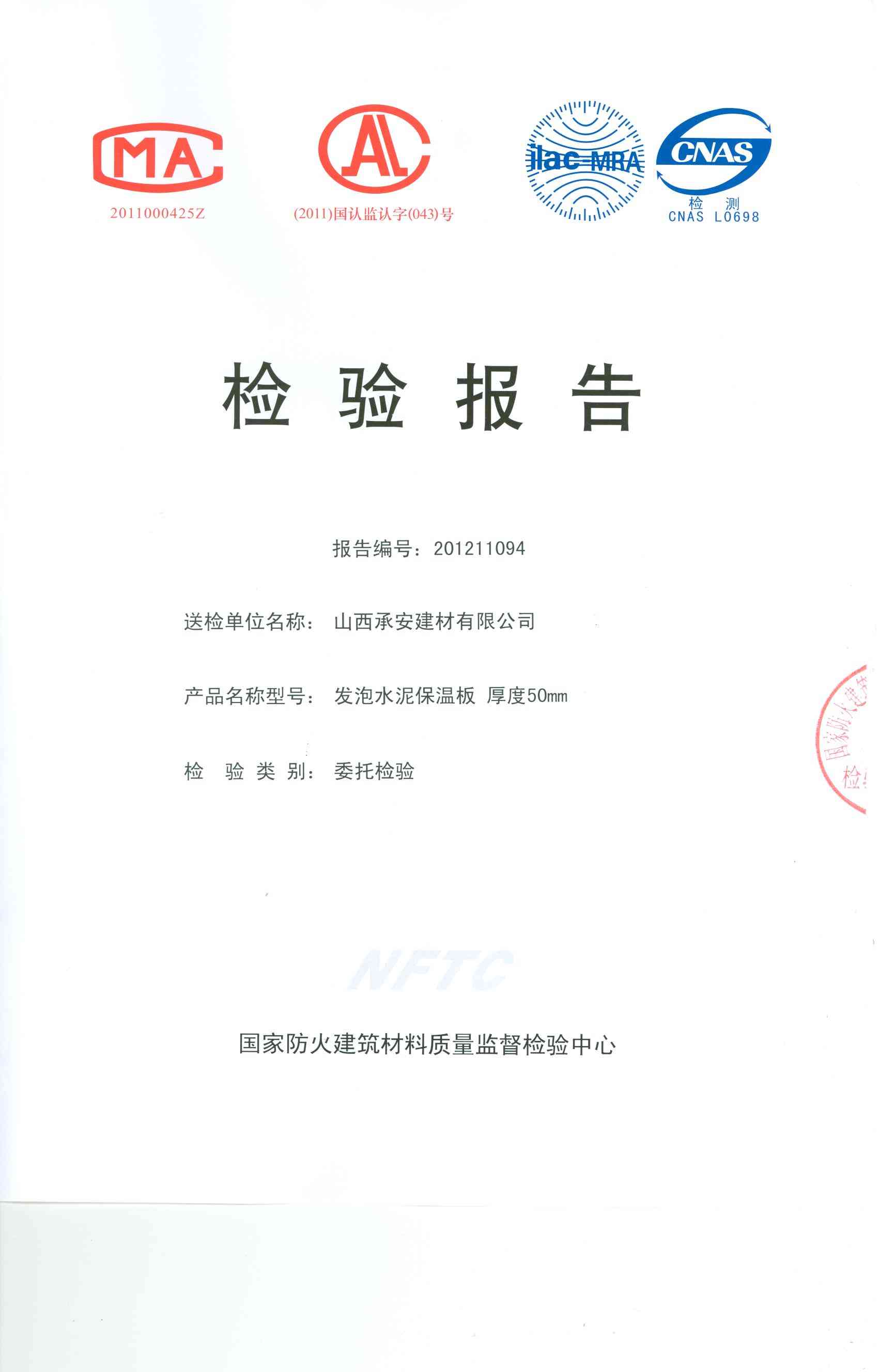 经检验,该制品燃烧性能符合A1级的规定要求。 按GB 8624-2006判定,该制品燃烧性能达到A1级。(以下空白)