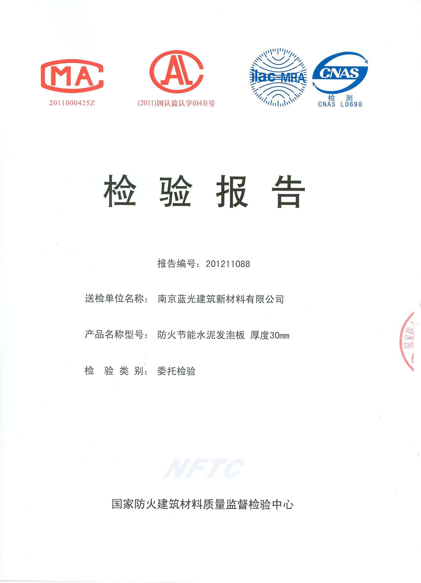 经检验,该制品燃烧性能符合A1级的规定要求。 按GB 8624-2006判定,该制品燃烧性能达到A1级。(以下空白)