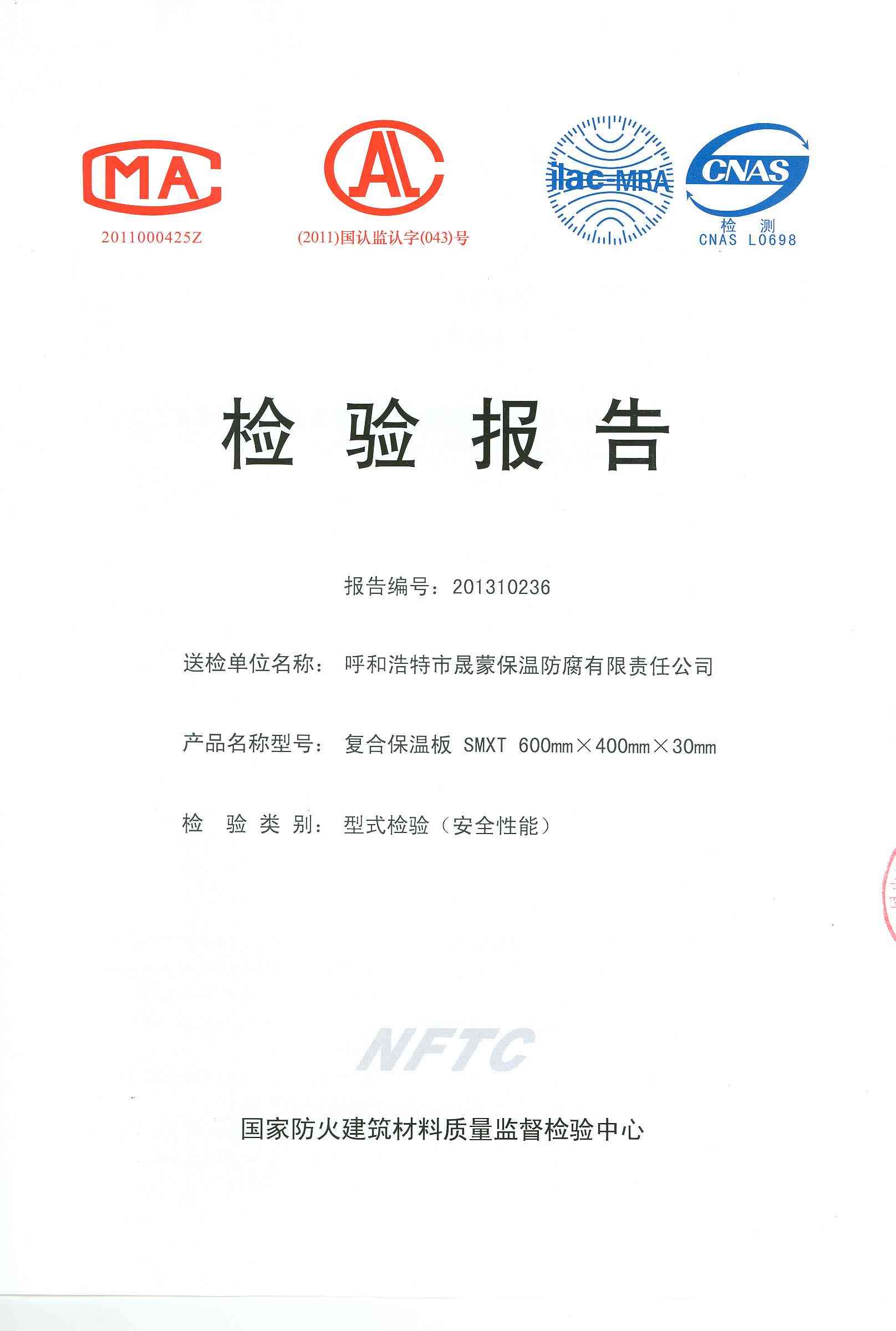 经检验,该制品燃烧性能符合A1级的规定要求。 按GB 8624-2006判定,该制品燃烧性能达到A1级。(以下空白)