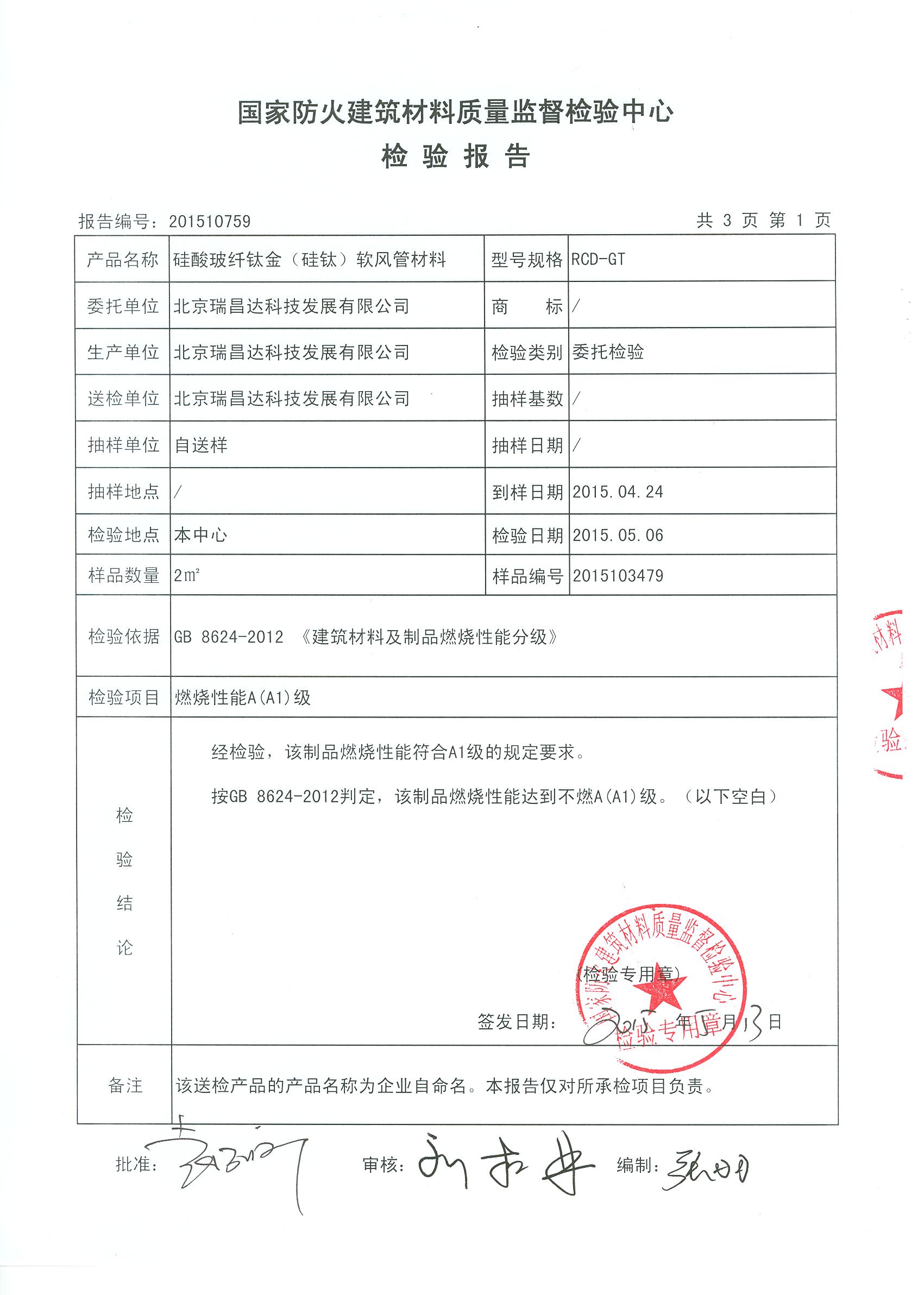 201510759 硅酸玻纤钛金(硅钛)软风管材料 北京瑞昌达科技发展有限公司