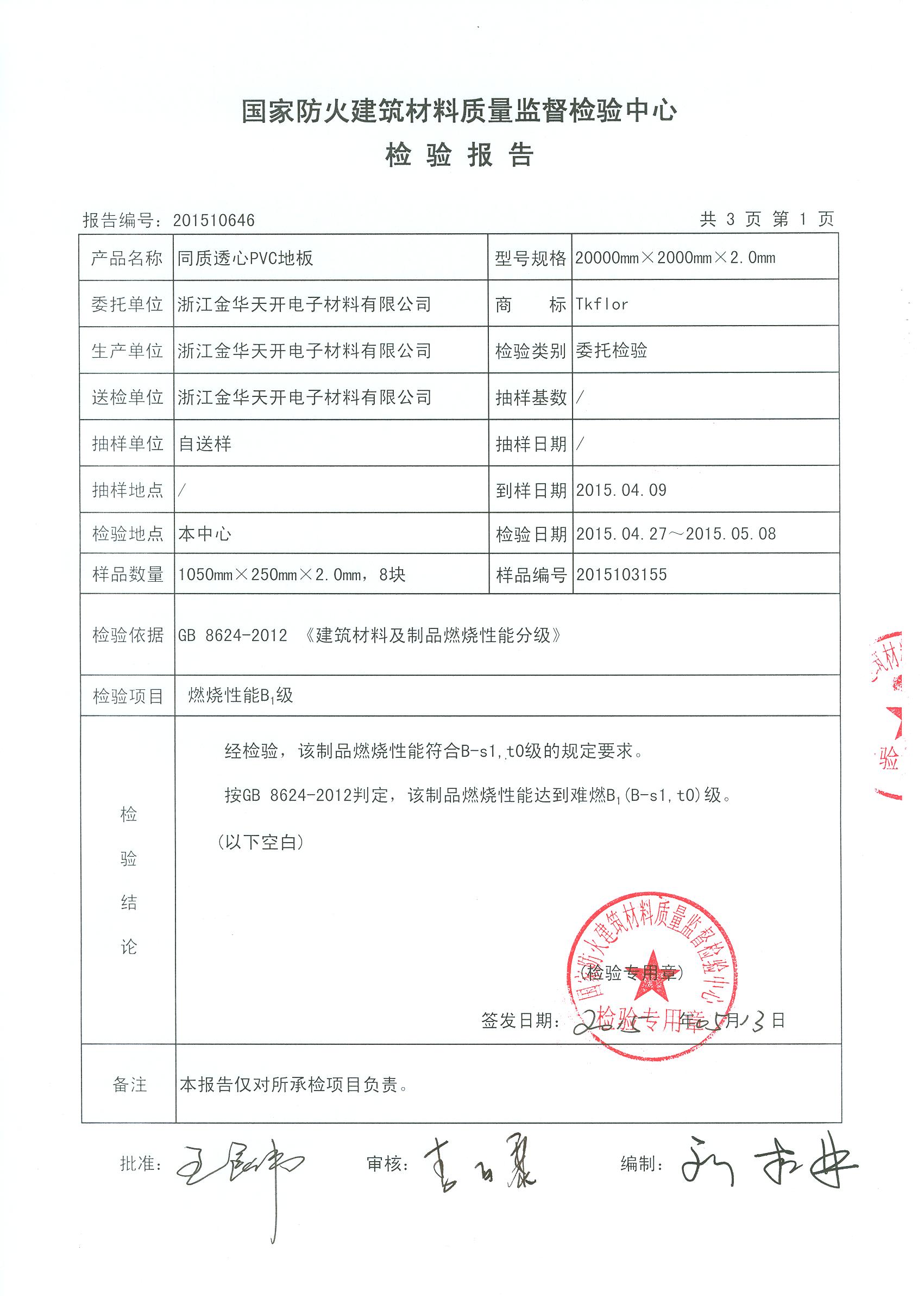 检验机构名称:国家防火建筑材料质量监督检验中心