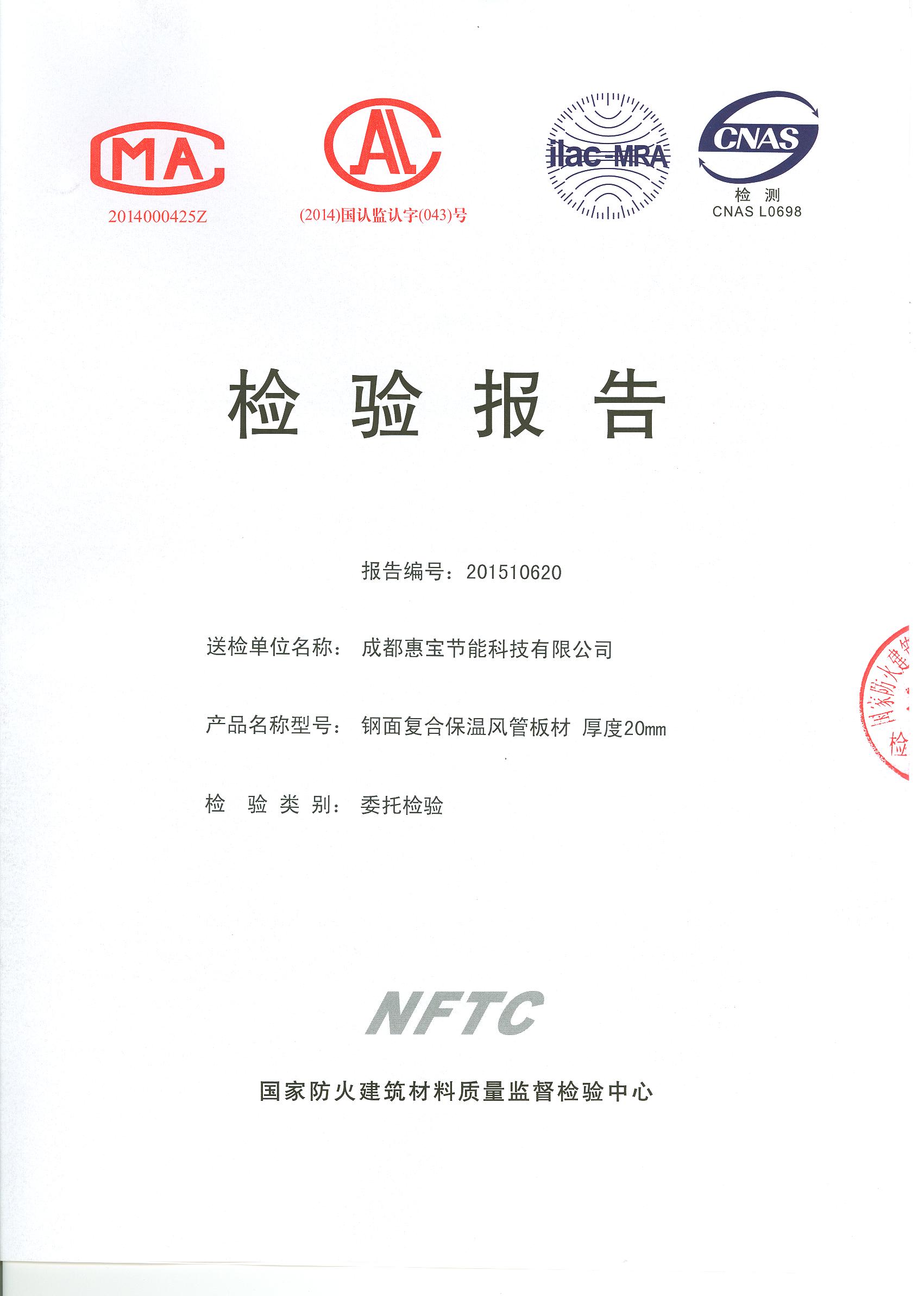 检验机构名称:国家防火建筑材料质量监督检验中心