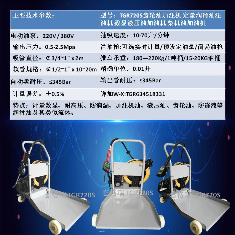 品名:电动数显机油加油机定量润滑油注油机齿轮油加注机TGR720S