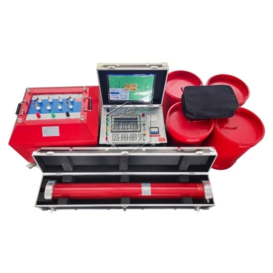 变频串联谐振试验装置运用串并联谐振的原理,通过调节变频控制器的输出频率,使得回路中的电抗器的电感L和试品电容C发生谐振,谐振电压即为试品上所加电压。通过调频控制器提供供电电源,试验电压由励磁变压器经过初步升压后,使高电压加在电抗器L和被试品CX上,通过改变调频控制器的输出频率,使回路处于串联谐振状态;回路的谐振频率取决于被试品电容CX和电抗器的电感L,调节变频控制器的输出电压,使试品上高压达到所需要的电压值。